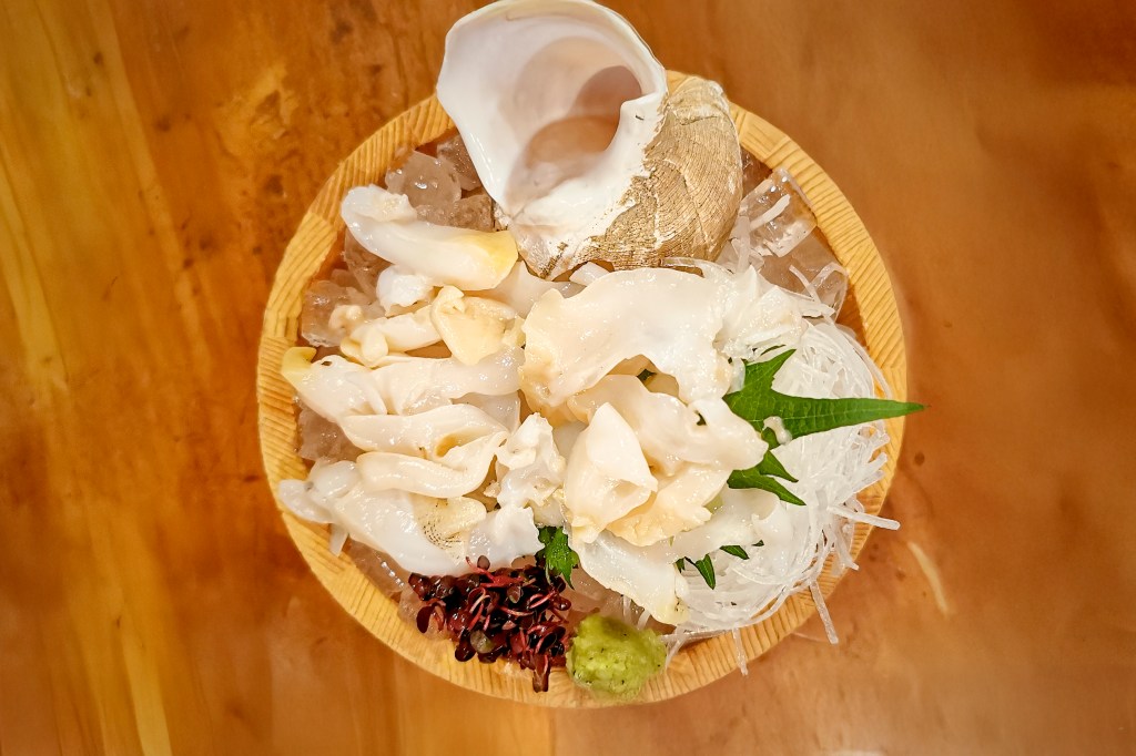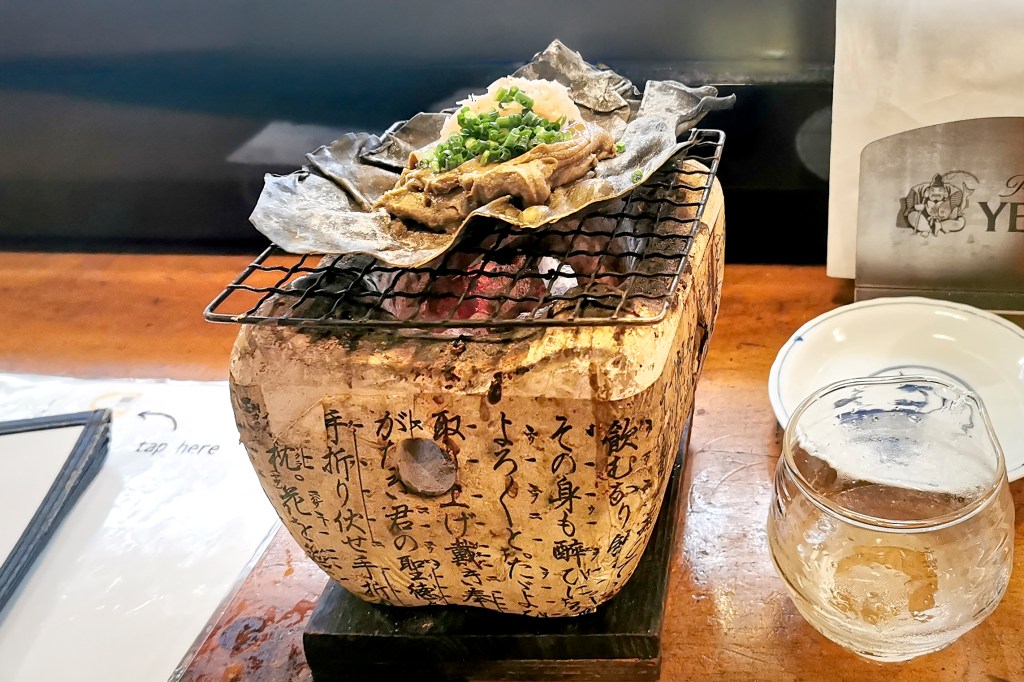 Mari’s wine bar is also an Izakaya and it eats very well, the chef, Tako, in his thirties, handsome guy, very reserved, is an excellent cook. Everything is neat, fine, well presented, original too. When I came in 2019, Mari had opened another restaurant, smaller, in a place that includes restaurants with a gastronomic vocation. She even opened a third one afterwards, but the Corona arrived and she had to give up the two new ones to keep only the bigger and more efficient one, the Lamp.