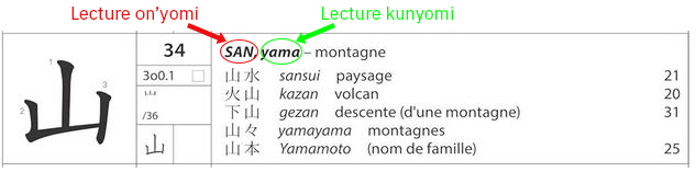 We see that when a word is clearly the combination of two kanji, the pronunciation is on’yomi, Sino-Japanese. Sansui, landscape, kazan, volcano, suiden, rice field (flooded). However, when it is a proper noun, the pronunciation is kunyomi, Japanese. This is logical since names like Tanaka (in the rice field), Yamada (mountain rice field) or Yamamoto (origin of the mountain) existed before the arrival of the Chinese script.