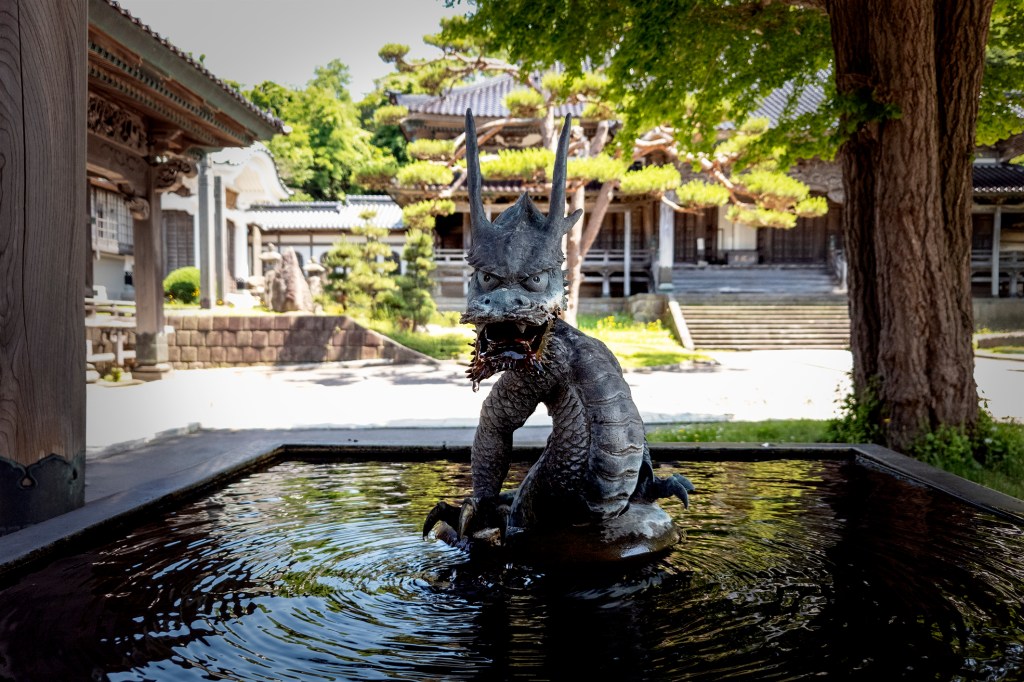 I find Kannon again in the courtyard of the temple whose cemetery I just crossed. She’s beautiful. No one’s around. A few boxy cars hint at monks or staff but don’t spoil the scene. The 手水舎, the purification pavilion where one washes hands before entering, features a dragon meant to be menacing but who looks rather comical. The temple is named Kōryū-ji—the Temple of the Fragrant Dragon. This is no superficiality—fragrance, associated with incense and pleasant aromas, symbolizes purity and spirituality. The dragon represents power—but also wisdom and spiritual elevation.