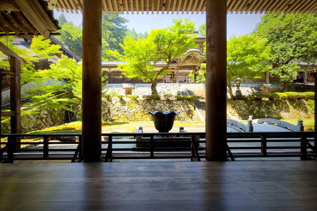 Eihei-ji was founded in 1244 by Master Dōgen, one of the greatest thinkers of Zen Buddhism. The temple has never been moved since that time, but it has been destroyed several times by fires and the clan wars of the Sengoku period in the 15th and 16th centuries. In 1580, the temple was almost entirely destroyed during regional conflicts. It would be rebuilt in stages over the following two centuries. Most of the current buildings date from the 18th century, all reconstructed following Master Dōgen’s original plan. The reason is clear—from the sky, the major buildings form a seated Buddha in zazen meditation posture.