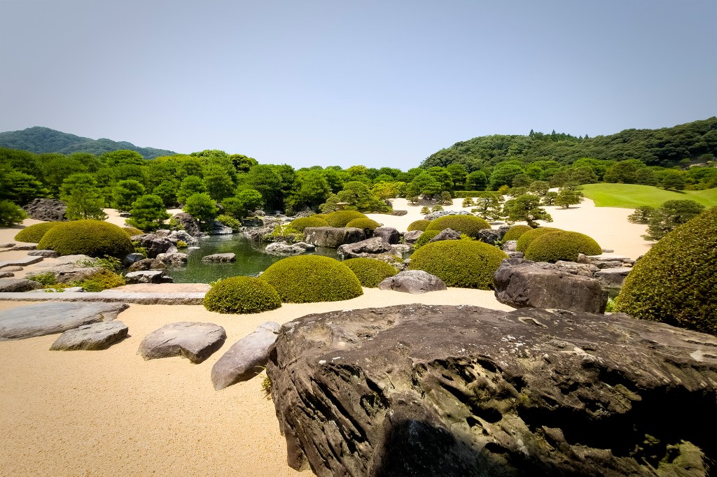 On the road to Matsue, Shimane’s capital, I stop at the Adachi Museum of Art. My friend Hisae recommended it, and her advice led to stunning beauty. The artworks are remarkable, and the museum is set in what The Journal of Japanese Gardening calls the most beautiful garden in Japan. Adachi Zenko, the museum’s founder in 1970, wanted “a garden as a painting,” and it is a dazzling success. Windows and openings were specially designed to frame various views of the garden, into which no one steps.